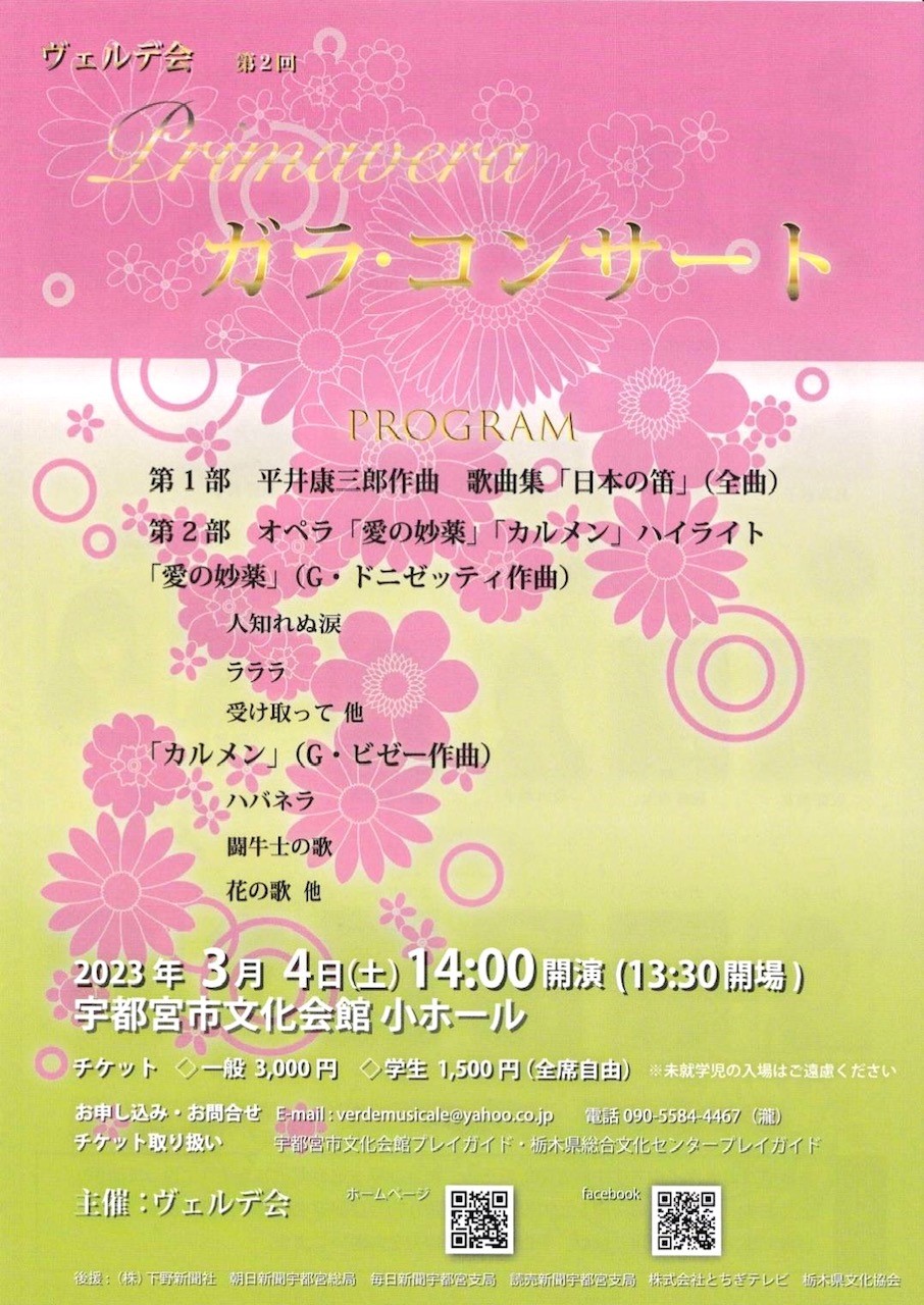 演奏会: ヴェルデ会 第2回 Primavera ガラ・コンサート